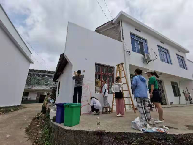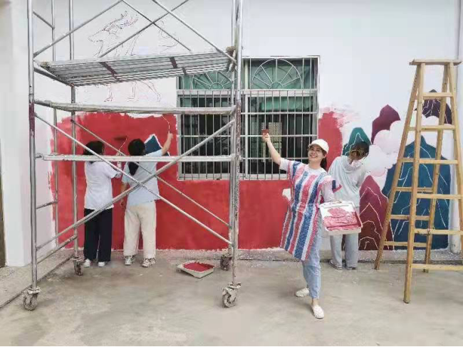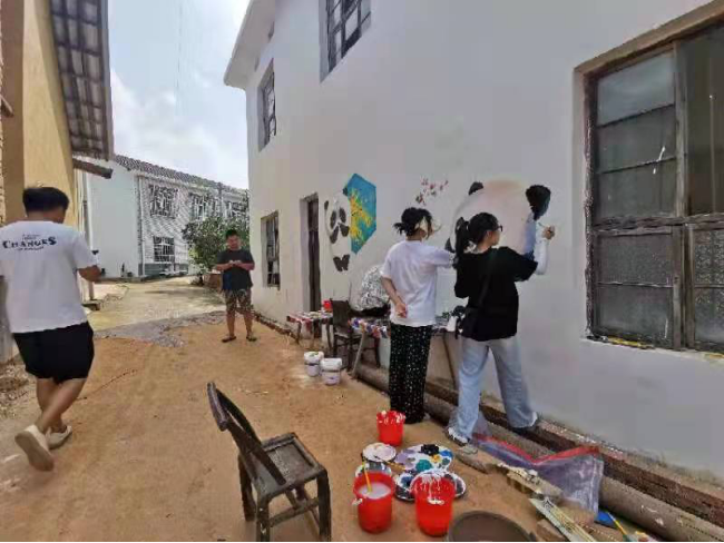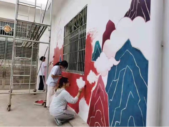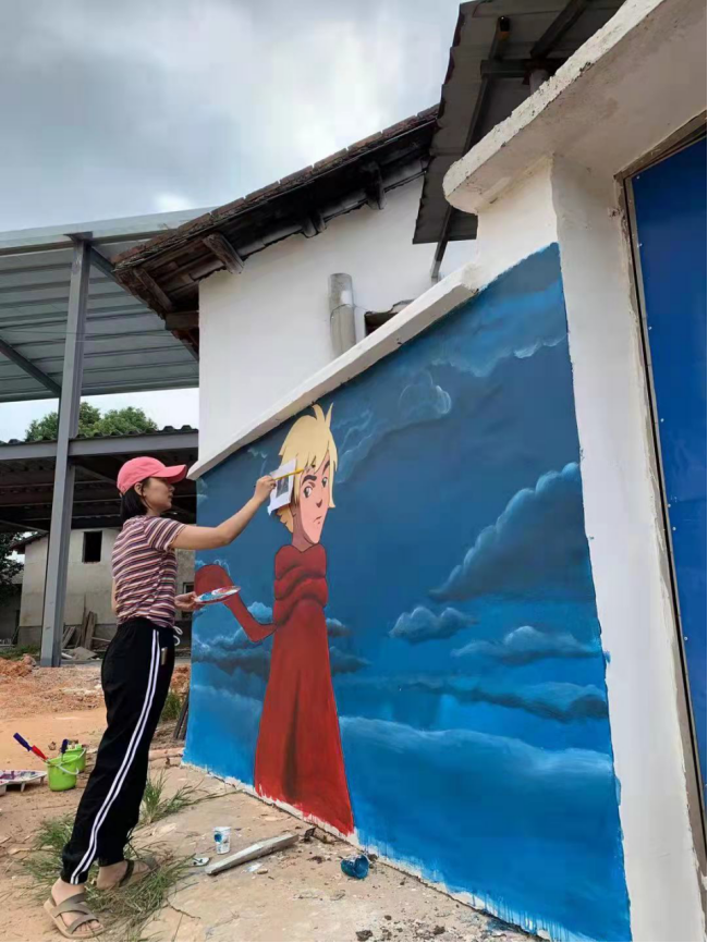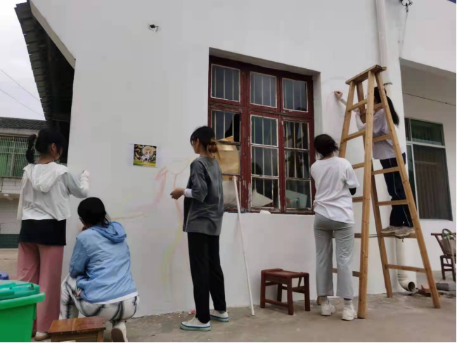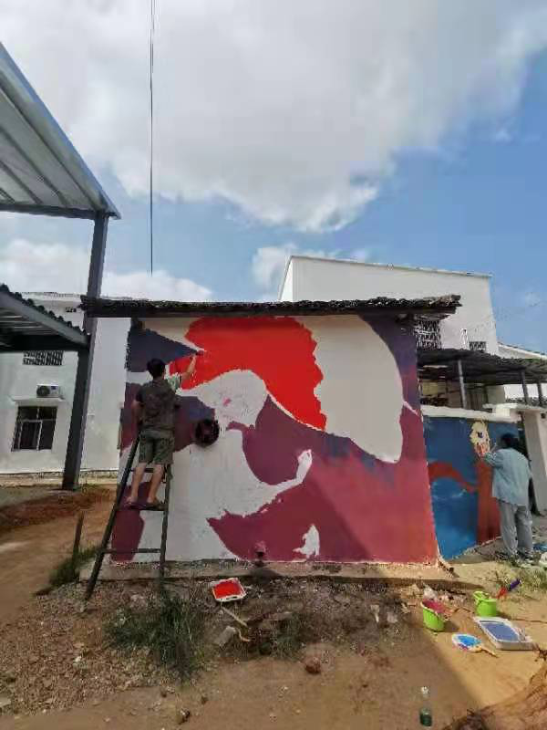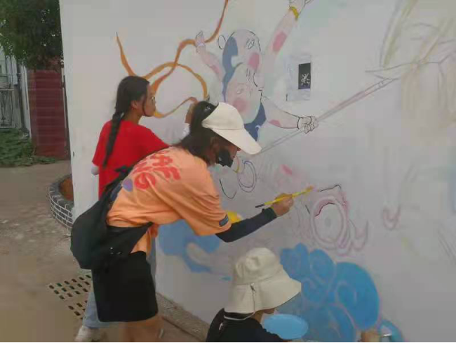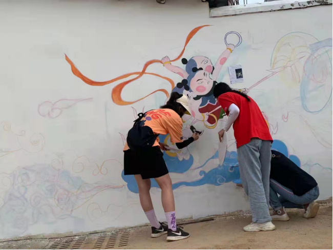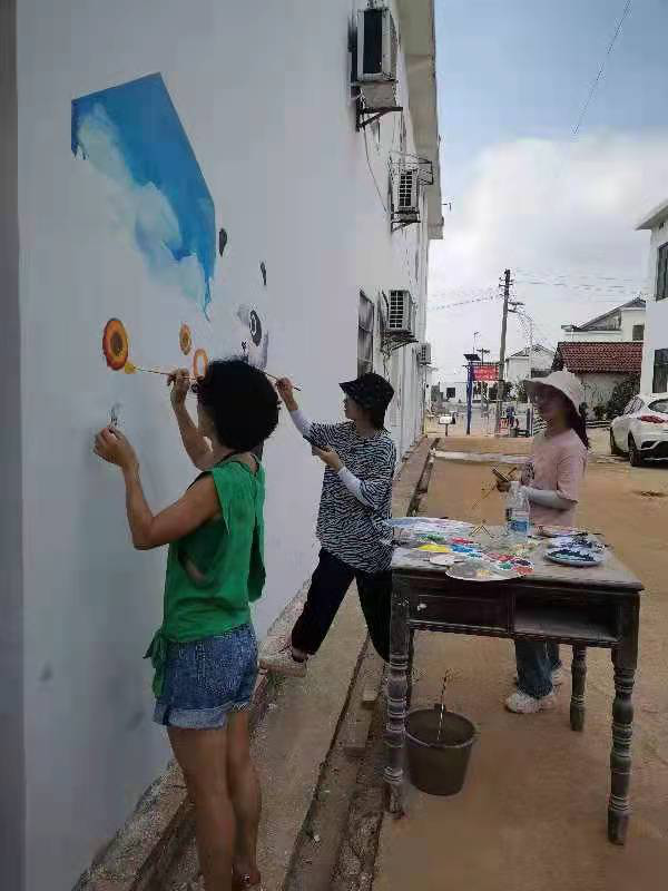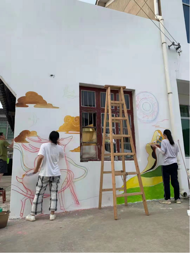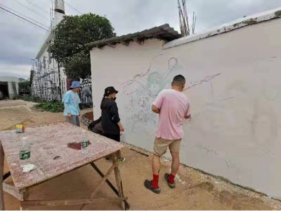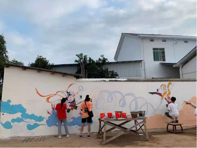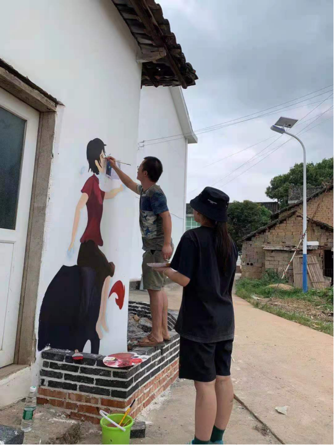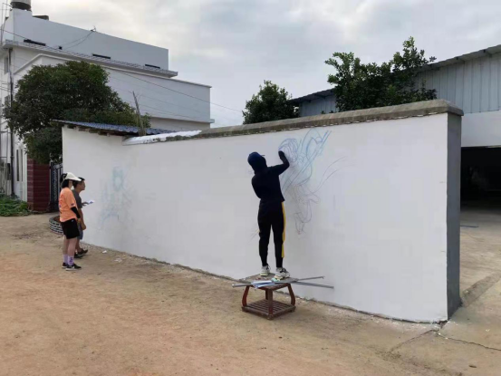 此次活动,结合所学专业知识和当地乡村实际,利用专业特性与当地特有文化历史资源,通过墙绘形式营造特有的文化氛围,打造宜居新农村。天气虽然炎热,但是抵挡不了大家的热情。为了高质量完成此次任务,师生顾不上休息,顶着酷暑在室外认真审稿、对稿、勾画、上色、一次又一次的描摹细节,一幅幅生动活泼的画面跃然“墙”上。