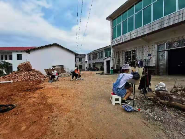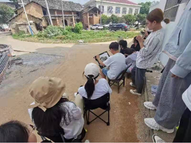 6日,在系主任伍莉的带领下,我校2020级美术教育专业全体教师和同学一同奔赴浏阳市洞阳镇北园村进行写生活动和帮扶“乡村振兴”墙绘美化志愿活动。此次活动将全体学生分为两组,写生与墙绘活动交互进行。上午,九点抵达住处,大家便立即前往写生与墙绘地点进行实地考察。下午全体师生各抒己见,展开全面探讨,敲定最终墙绘画稿。同时,教师们为第二天的写生组讲解行程安排,并强调注意事项。