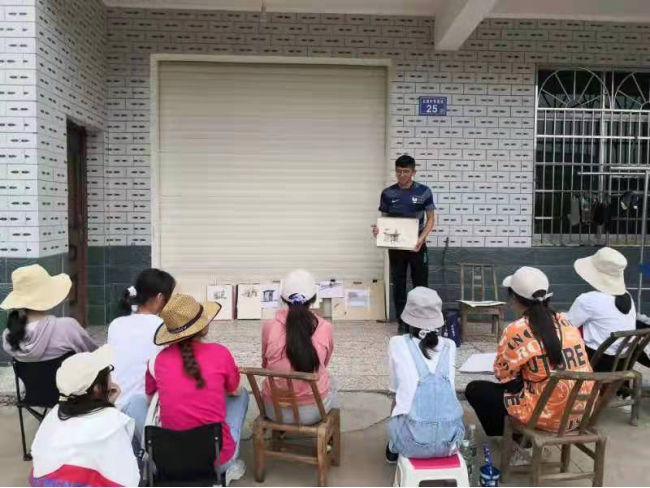 7日,早上7.30分全体集合出发。写生组的负责教师带领同学们在村子里找好写生点后,便迅速开始了讲解、示范、指导。另一边,墙绘组的同学们快速认领各自的任务,在专业教师的指导下按照底稿挥舞起画笔。天气虽然炎热,但是抵挡不了大家的热情。为了高质量完成此次任务,师生中午仅在用餐处稍作休息,一点半又继续创作。傍晚,墙绘四个小组的作品已初见轮廓,写生组也收获颇多。
