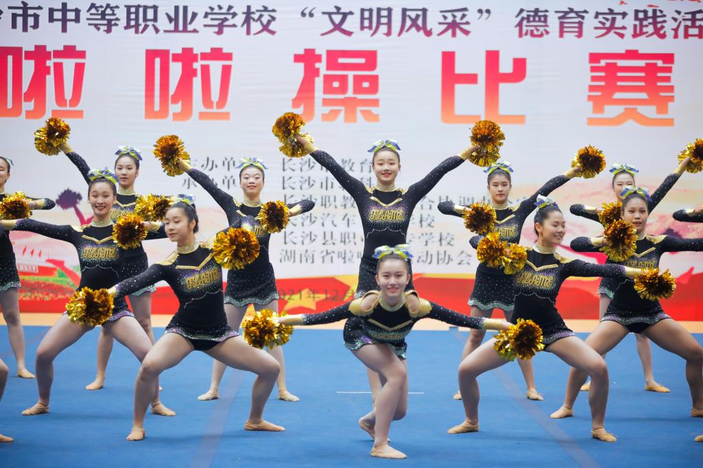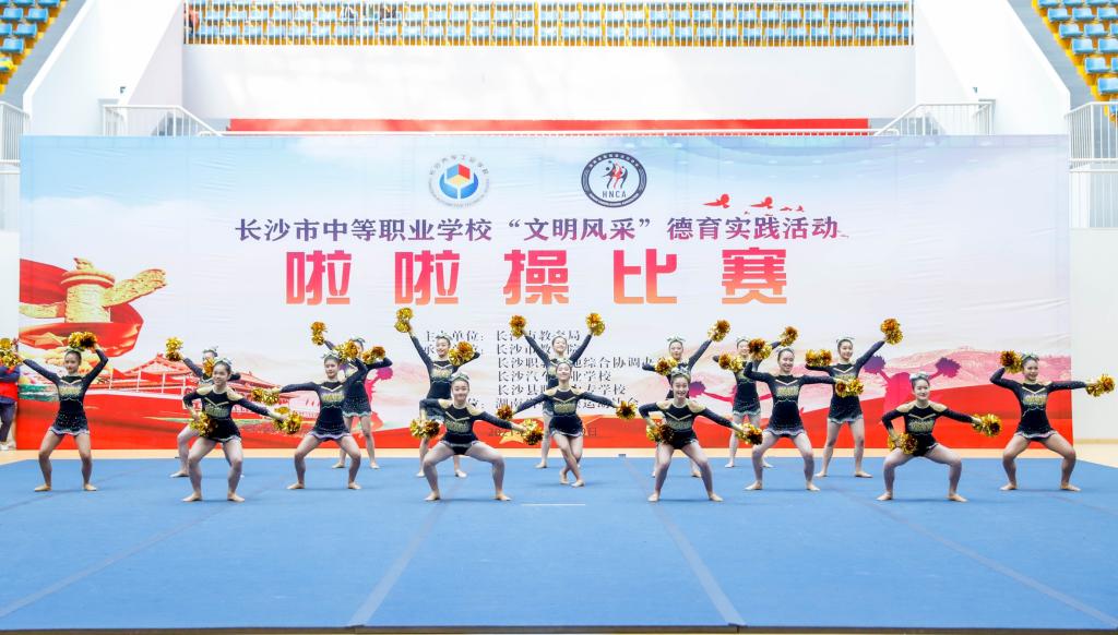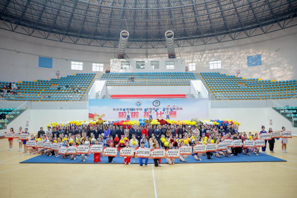 长沙市中等职业学校2021年度“文明风采”德育实践活动——啦啦操比赛于12月9号在职教城体育馆举行。本次比赛共吸引了38支队伍,400余名运动员参赛。此次赛事由长沙市教育局主办,长沙市教科院、长沙职教基地协调办公室、长沙汽车工业学校、长沙县职业中专学校协办,湖南省啦啦操运动协会承办。比赛分为两个单元,开展啦啦操自选动作和啦啦操示范套路等项目的比拼。