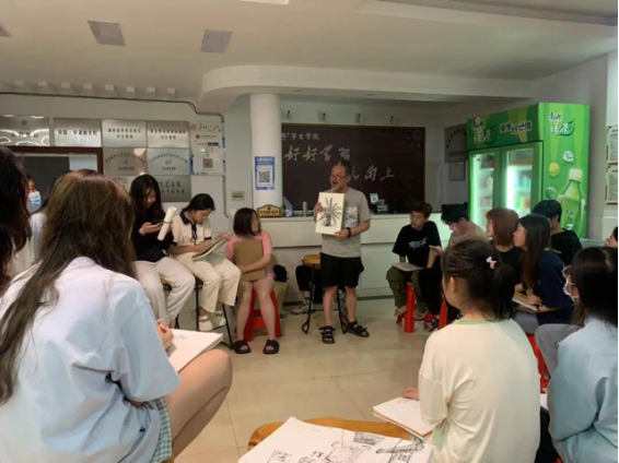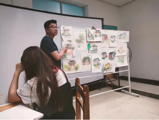 到了每日写生分组小结时间,指导老师一幅幅地分析绘画作品,点明其优点与不足,从作品中指出问题和后续写生学习的进展方向,以便学生能力的提高。