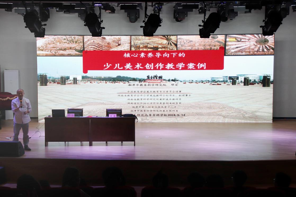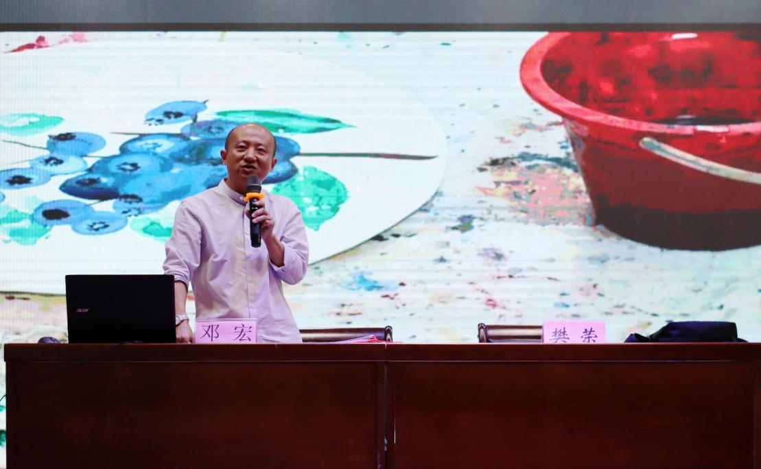 讲座特邀了中国教育学会美术教育专业委员会理事、湖南省教育学会中小学美术教研会秘书长、湖南省校外培训项目分类鉴别专家、湘潭市教育科学研究院美术教研员邓宏作为主讲嘉宾。他以其深厚的专业知识和丰富的教学经验,为22、23级全体美术教育、舞蹈教育专业的学生带来了一场精彩纷呈的学术盛宴。