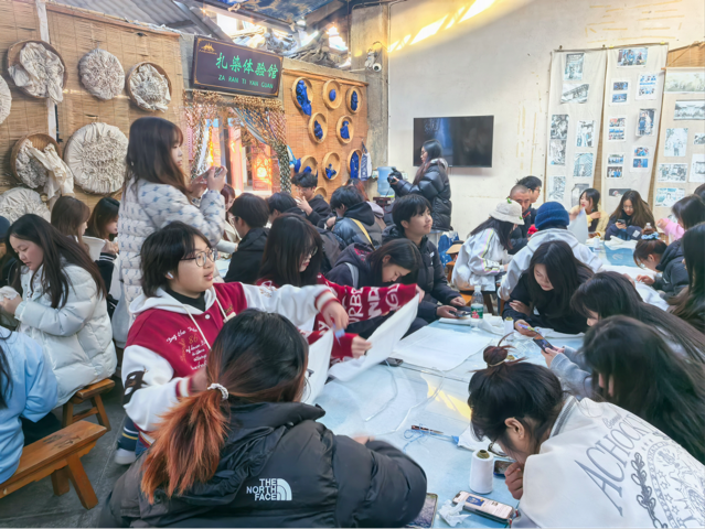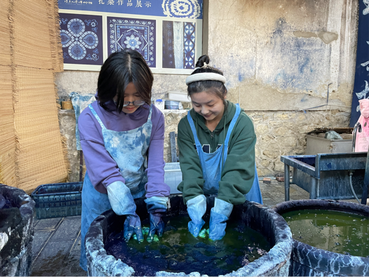 在周成村的灵秀山水间,师生们不仅以扎染绘就年华,