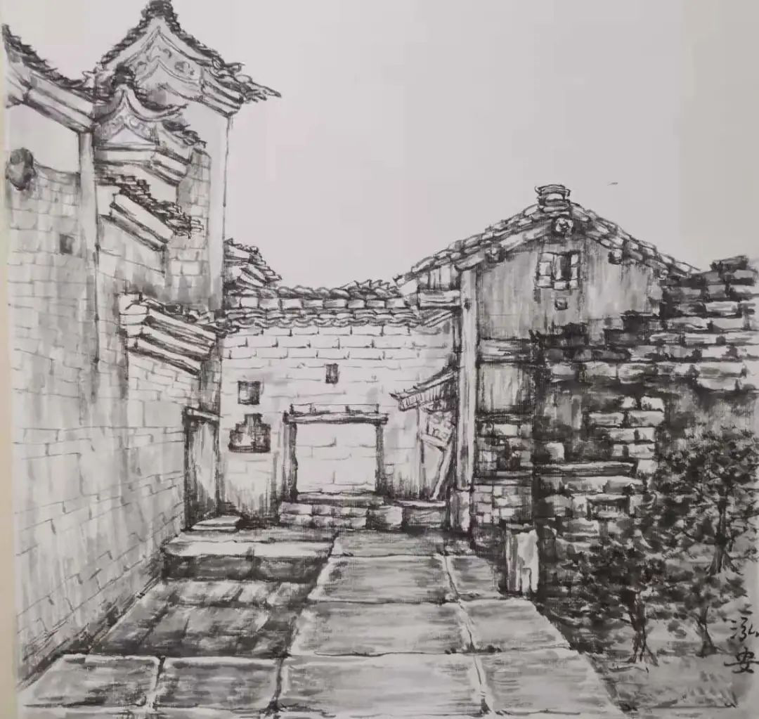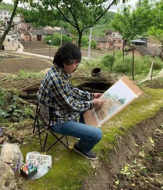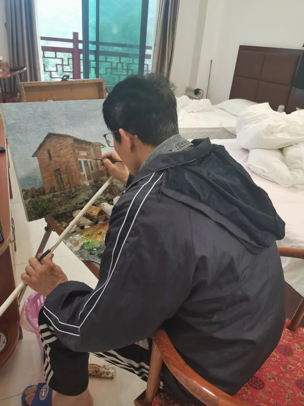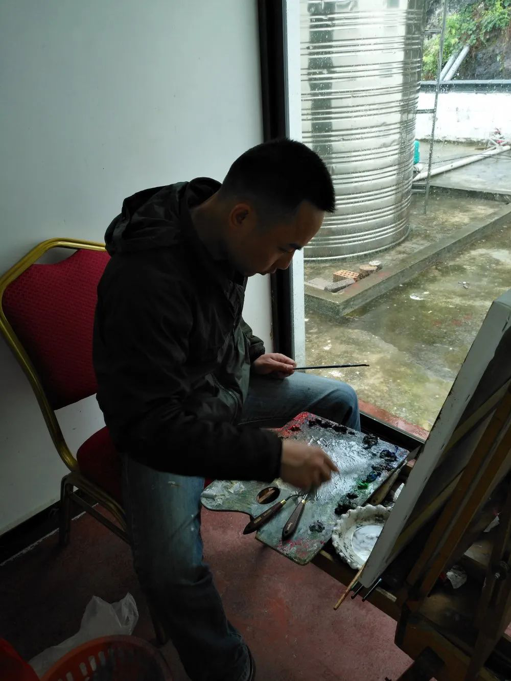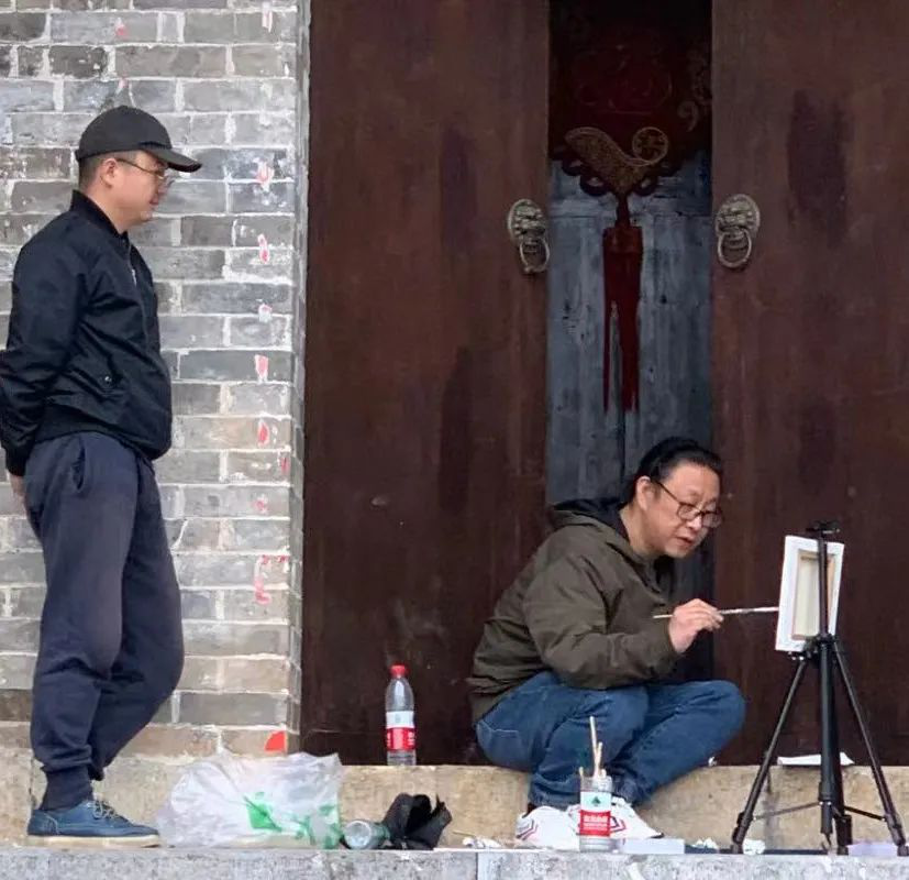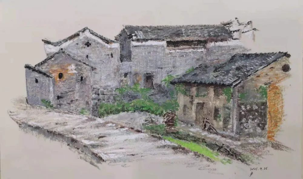 老师们第一个写生点---民风淳朴的小桃源村。在白墙黑瓦的民居楼下,不时有村民挽着裤腿牵着耕牛走过。初春的嫩芽刚刚从树梢抽出,寒气还没褪去,教师们纷纷拿着绘画工具走进山村,用自己的画笔将小桃源村的美好定格。25日一整天,老师们与画板为伴,沉浸在写生中,傍晚时分才回到写生基地。26日,由于当地暴雨,教师们选择在写生基地写生创作,在阳台、门廊里将雨中美景呈现在画面上。
