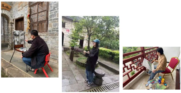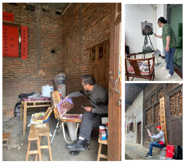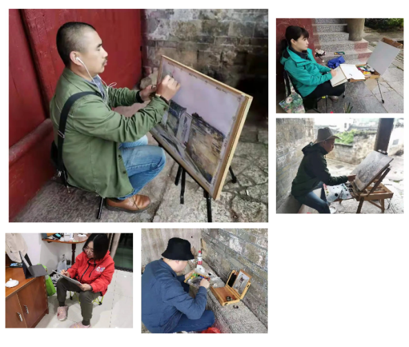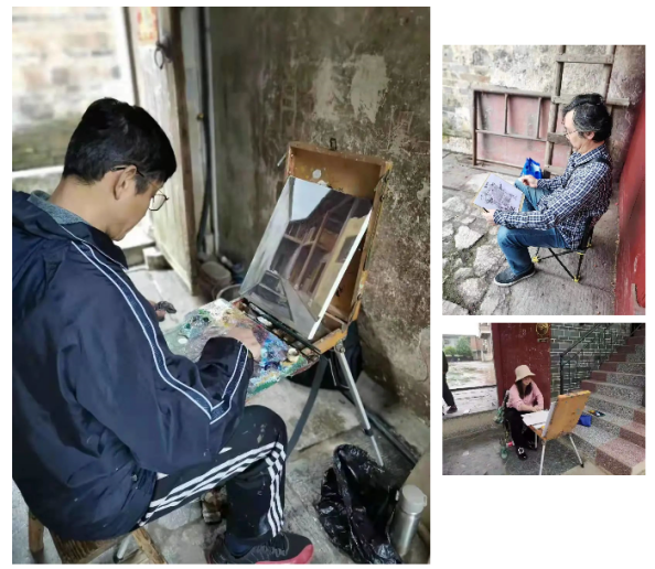 4月27日,老师们来到下灌村的第二个写生点——广文桥。附近特色的民居、石桥、楼阁、灌溪川流吸引了大家的目光,每位老师都在认真地取景、选择角度,迫不及待地开始了自己创作。28日,按计划来到了第三个写生点——琵琶岗村。富有当地特色的砖雕、石刻、房屋等都成为极佳素材,尤其是村庄独特与悠久的历史极大的激发了老师们的创作热情。