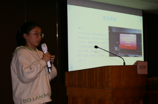 总结大会的第二部分是学生分享。本阶段由2020级舞教1班陈佳佳同学主持。首先通过一段VCR生动有趣地向大家展示了见习生活。
