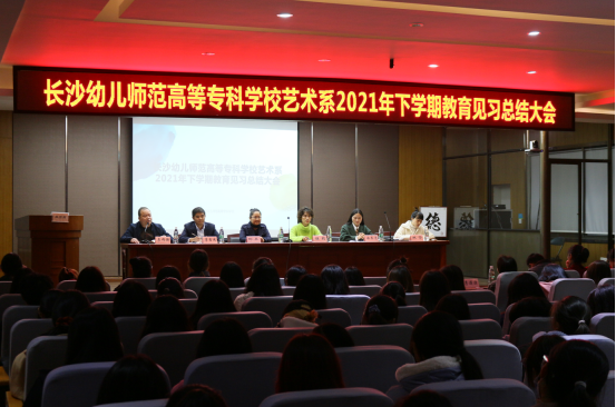 2021年11月29日19点在学校东校区六楼会议厅举行艺术系2020级舞蹈教育专业教育见习总结大会。学校招生就业处刘丹处长、艺术系伍莉主任,李伟强副主任,舞蹈教研室李潇潇主任、美术教研室宋志强主任、音乐教研室倪巍主任、舞蹈教育专业负责人林资老师、辅导员杨宏老师等,以及师范类大一大二全体学生参加本次总结大会。同时邀请了长郡雨花外国语第二附属小学教务处李吉庆主任和教研室徐玉清主任出席本次会议。