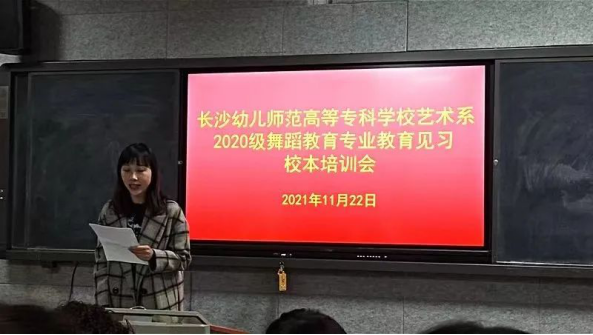 11月29日19点在学校东校区六楼会议厅举行艺术系2020级舞蹈教育专业教育见习总结大会。学校招生就业处刘丹处长、艺术系伍莉主任,李伟强副主任,舞蹈教研室李潇潇主任、美术教研室宋志强主任、音乐教研室倪巍主任、舞蹈教育专业负责人林资老师、辅导员杨宏老师等,以及师范类大一大二全体学生参加本次总结大会。同时邀请了长郡雨花外国语第二附属小学教务处李吉庆主任和教研室徐玉清主任出席本次会议。