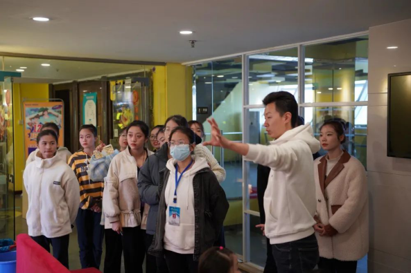 11月28日下午,在伍莉主任带领下,全体见习师生赴四海舞蹈贺龙校区实地交流学习。观摩了由金牌教师谭娟娟、陈楠、李娜授课的高年级、中年级、低年级舞蹈课堂。并开展了一场零界限交流会议,为同学们分析了艺培教育的发展、教学工作内容、职业晋升空间以及发展前景。通过这次艺培领军机构的见习实践,同学们了解到艺培机构的专业以及严谨性,并能初步规划今后的发展方向以及努力目标。