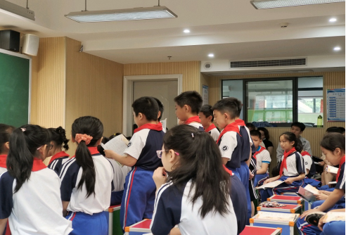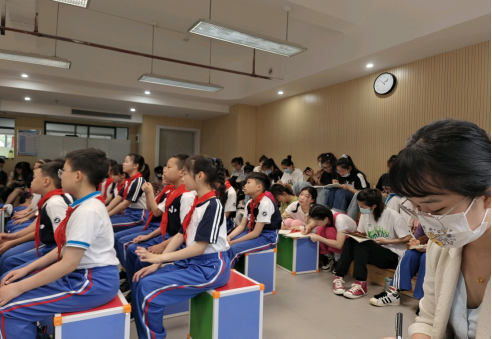 为了贯彻学科融合借鉴,上午8:30-9:10,全体第四见习队来到音乐组进行大教研音乐课的观摩,本堂音乐课选自小学四年级河北民歌《对花》。为培养学生自主探索和发现问题的能力,在教学设计上,老师采用了先让学生自学课例的方法:学生在学的过程中留意自己不会和感到困难的部分,随后老师根据这些问题进行讲授。整堂课围绕教学重点紧凑有序。在教学过程中,学生分组合作,相互讨论,积极发言,课堂氛围十分活跃。