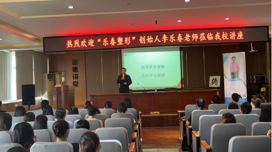 5月28日上午九点,舞蹈教育专业学生在本校会议室参加“乐春塑形”创始人李乐春老师的讲座。李老师向大家分享了中国古典舞的溯源、在培训和训练孩子们时要注重他们的骨骼发育以及要以安全健康的方式培养和训练孩子。最后还向大家分享了往期因训练错误造成身体瘫痪的新闻事件,告诉大家要对每一位孩子负责,要正确且专业的培训孩子。其中重点提出了他们的特色内容,在分析人体骨骼发育中,因材施教的培养孩子中国舞。