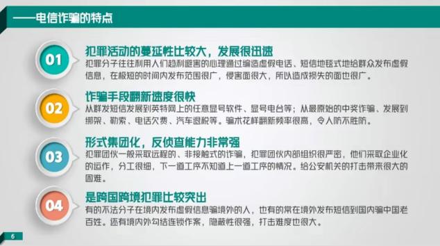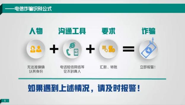 主讲人吴明伟从“什么是电信诈骗?”开篇,通过“人物+沟通工具+要求=诈骗”这一简洁明了的公式让大家学会识别电信诈骗,并联系实际案例,向同学们介绍了电信诈骗概念及特点,特别阐释电信网络诈骗的普遍性,同时强调涉世未深的大学生属于“易感人群”,提醒大家要提高警惕。