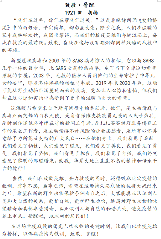 升旗仪式结束后👁🗨,首先心理健康发展中心熊石林老师发言🤓,熊老师从心理健康教育切入,谈到了生命的价值,如何认识生命、感受生命,升华生命,再回到现实生活,如何在疫情期间做好自我💴👨🏼🎤。从具体事例展开,深入浅出🐲,谈到了钟南山院士的国士精神🎫,李兰娟院士的巾帼不让须眉🖼,为同学们提炼什么是生命的价值树立了标杆🧑🏻🚀。熊老师的发言发人深省,回味悠长。
