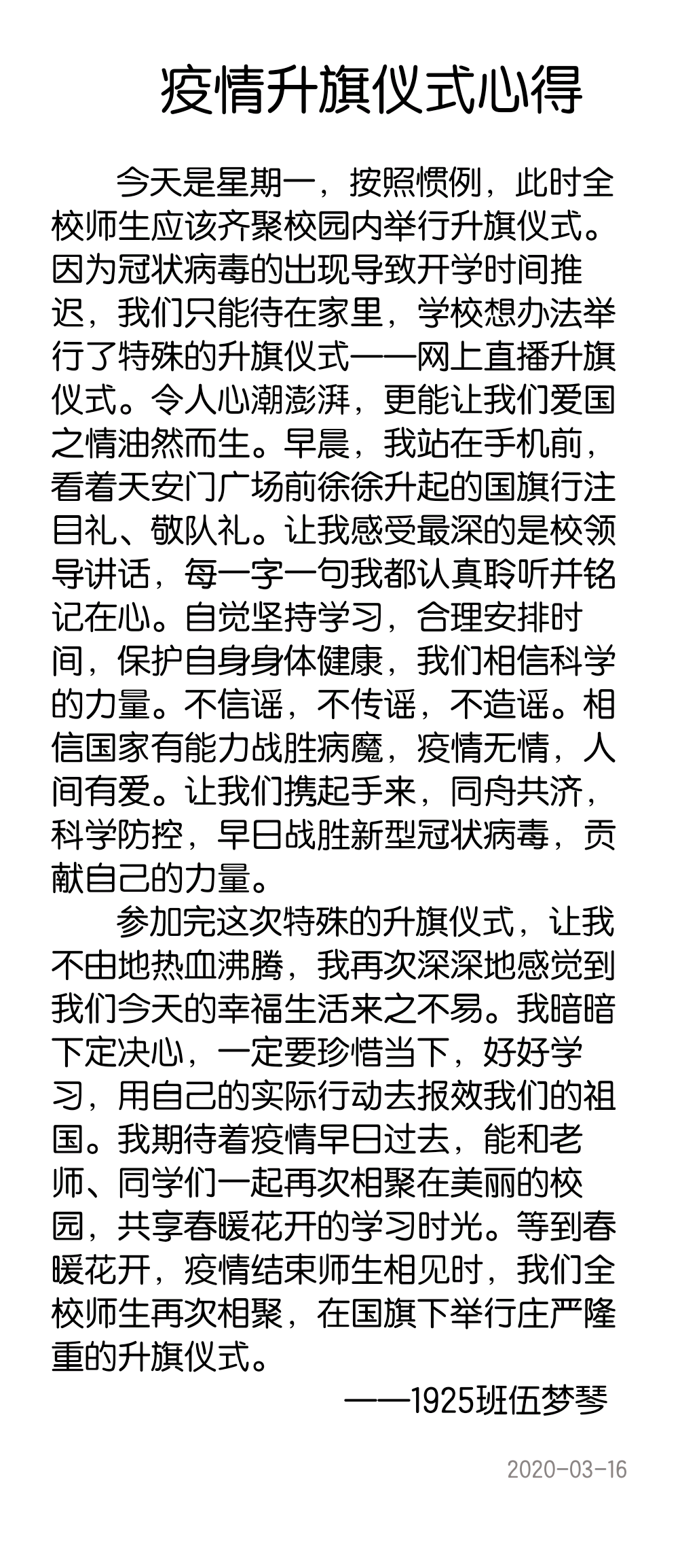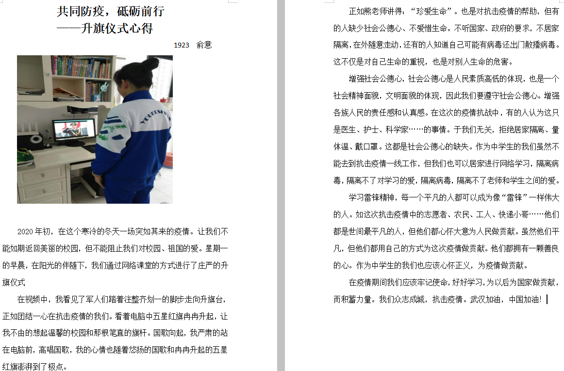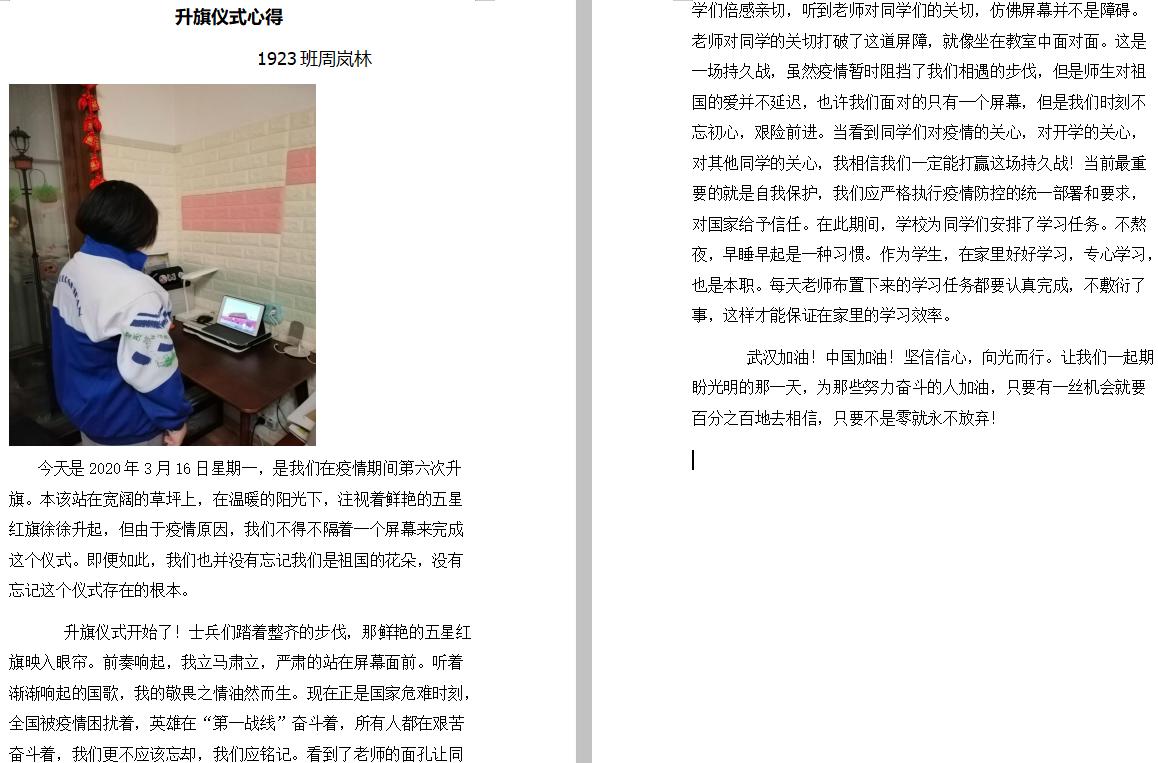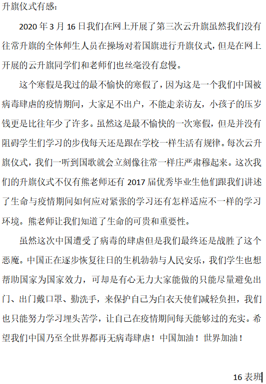 附2🙇🏽♂️:各班参加线上升旗仪式的实景照片和学生心得