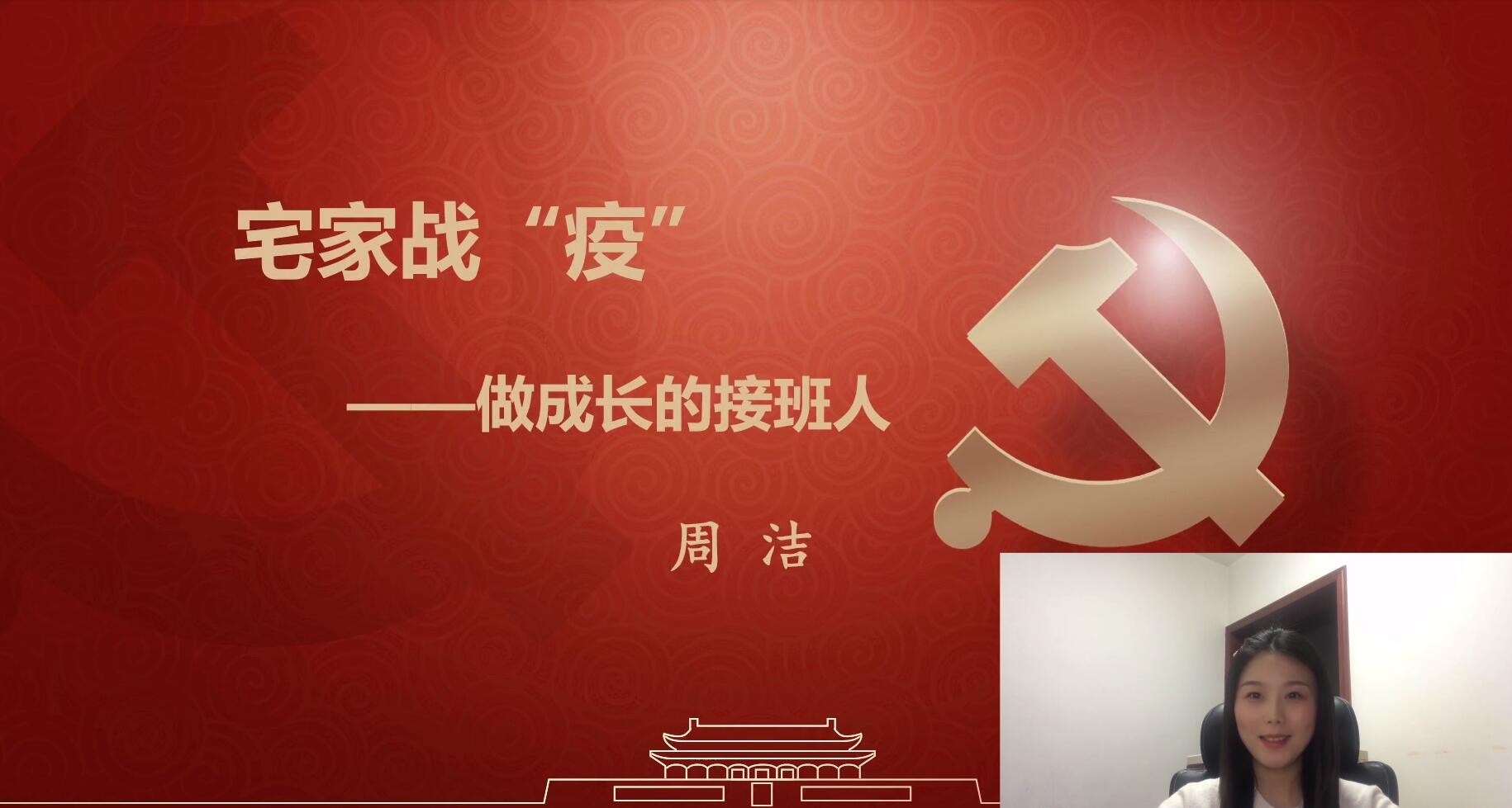 庄严的升旗仪式结束后,首先,周洁老师做了主题为“宅家战“疫”——做成长的接班人”的发言,同时电话连线,请到了一些学生和家长代表做客线上升旗仪式,学生讲述自己疫情期间的所做所思所感,表达了作为一位中职生应该做好自己,致敬英雄的情感,家长讲述了在学校老师的教育下,孩子每天制定作息时间,认真学习,积极做家务,按照要求做好防疫工作。宅,也要宅出精彩,宅出力量!