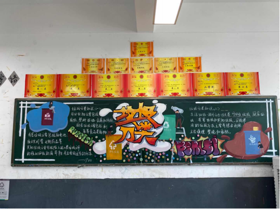 本月的黑板报活动已经落幕,希望获奖班级能继续加油,而没有获得奖项的班级也要取长补短在下一次黑板报评选中加油!垃圾分类靠大家!爱护环境!从我做起!还给天空一片蓝色的天空吧!