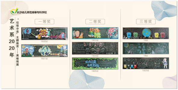 垃圾分类是对垃圾收集处置传统方式的改革,是对垃圾进行有效处置的一种科学管理方法。为了让学生养成良好的垃圾分类习惯,艺术系出版了一期“垃圾分类 你我同行”的黑板报。具体评比结果如下: