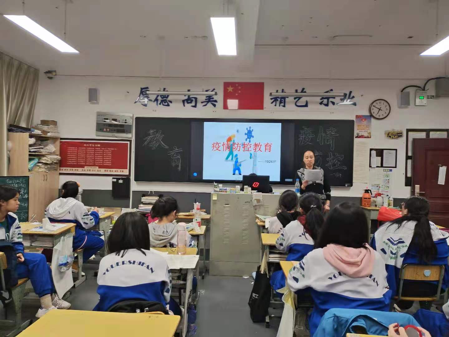 近期,新疆喀什地区报告多例新增新冠肺炎无症状感染者和确诊病例,天津、上海相继发现本地病例,国外暴发与国内散发给常态化的疫情防控带来了巨大的挑战,而且新冠病毒的传播途径多样化,不仅可以人传人,还可以物传人,更加使得疫情防控工作面对巨大的挑战,为保障全体师生员工的生命安全,坚决遏制疫情传播和扩散,艺术系伍莉主任11月12日上午10:00在学校参会后,马上组织全系班主任老师于11月12日下午17:00,在艺术系二栋四楼会议室召开新冠肺炎疫情常态化防控工作推进会暨学生疫情防控宣传教育大会,会议由艺术系副主任戴申林主持,艺术系伍莉主任、艺术系杨平老师参加会议,全体班主任老师出席,没有一个班主任老师迟到早退或请假。