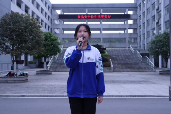 2010班姜乐妍同学,她提出2003年的SARS、2019年的新冠大流行,在一定程度上都与人类的捕食野生动物有关,给人类的生命造成了巨大的损害,在病毒的抗争中觉醒,在灾难的磨炼中成长,作为学生的我们要拒绝捕食野生动物,做一个尚德守法、拒食野味的学生,另外她还列举了有关的食品安全的案例,告诫同学们管住嘴,迈开腿。