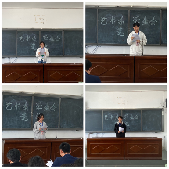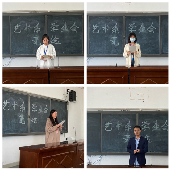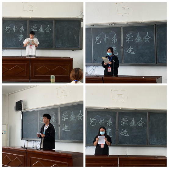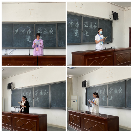 艺术系学生会于2022年5月16日中午12点30分在2301举行了学生会的换届选举,由艺术系学生会副书记王宁主持此次选举。参加本次大会的有艺术系副主任戴申林、杨平老师以及学生会的全体成员,此次竞选由学生会的成员自愿报名自己要竞选的职位,并提前写好竞选稿,然后上台演讲,要求时间控制在3分钟以内,本次竞选保证公平公正。