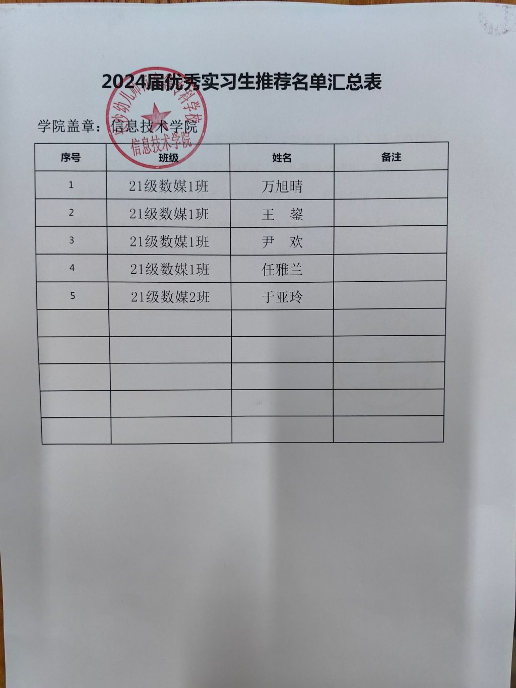 根据神彩争霸8安卓下老版本《学生奖励办法》等文件精神,经过学生自主申请、班级民主评议、评审委员会评审,拟推荐万旭晴等5名学生为2024届优秀实习生推荐人选,具体名单见附件,公示期为2024年5月21日至2024年5月24日,公示期内如有异议,请以书面形式反馈至信息技术学院办公室。