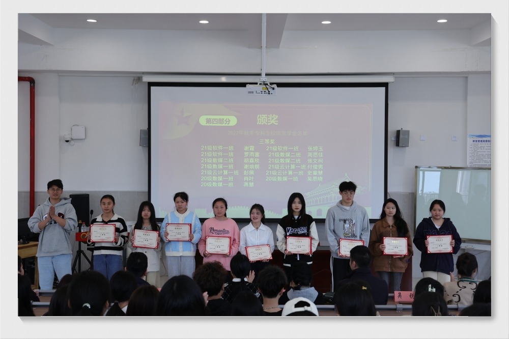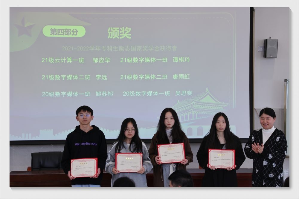 2023年3月14日下午,我院在德馨楼132举办2021-2022学年三评表彰大会。本次会议由数媒一班刘馨励主持;党总支书记李科、院长吴佳蒂、副院长彭勃、副院长王潇翔、学院老师吴锐、张德健、陈雯婧,各获奖同学和团学会及各班代表参加了本次会议。