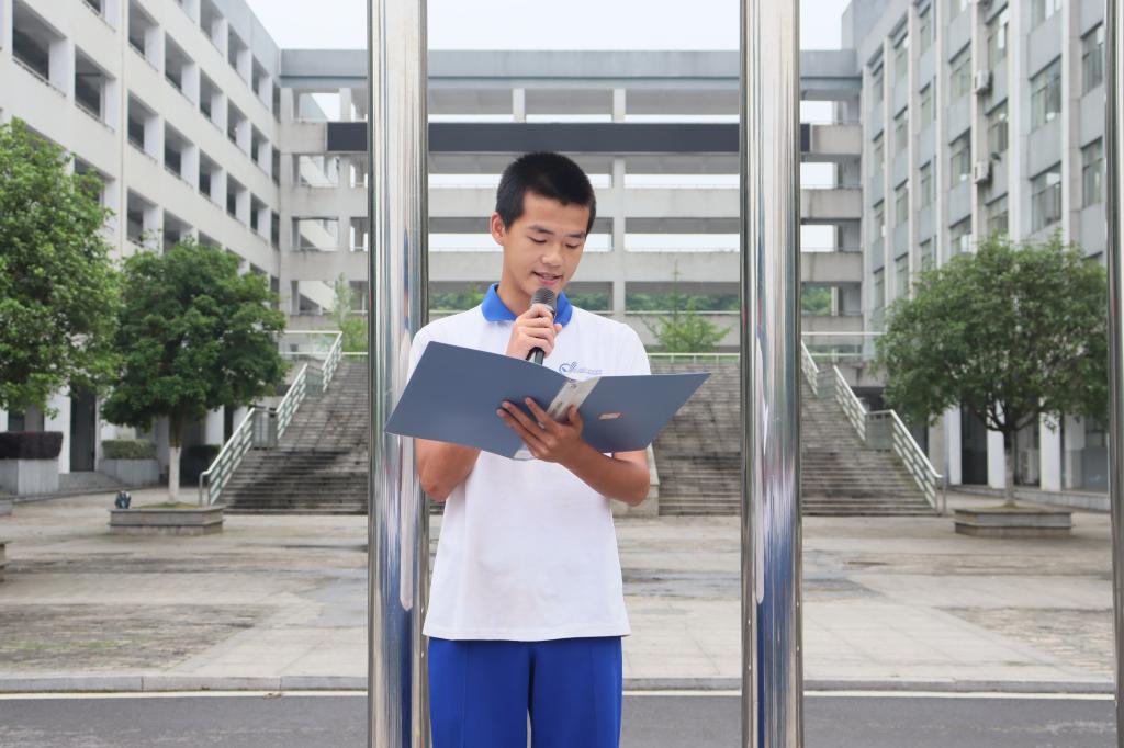 首先,由来自1919班的罗泽宇同学进行国旗下讲话,他说到青春可以是潜心于科学研究,十年磨一剑;青春还可以是扎根于边疆,一心谋发展;青春更可以是手持炸药包炸碉堡时那一声惊天动地的呐喊。青春是整个人生旅程中最绚丽的一站,最奇妙的一站,最灿烂的一站。