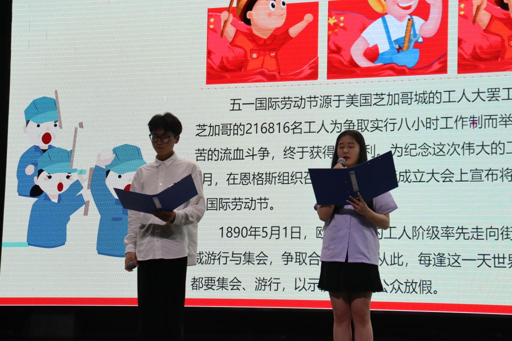 “光荣属于劳动者,幸福属于劳动者。”劳动创造世界,劳动创造未来,每一位辛勤付出的劳动者都值得被赞美和歌颂。信息技术系20级数媒一班吴思晓同学与21级数媒一班黄镇湘同学用举例的形式生动地为大家讲述了那些默默付出、不求回报的劳动者们感人的故事。让我们更加深入的了解了劳动者们吃苦耐劳、默默奉献的精神。然后由21级数媒一班刘馨励、杨文彪与国旗班的同学们演绎《毛泽东的责任田》故事:表现出当时毛主席出身于农家,一生简朴,以身作则。在延安时,他同指战员们一道,亲自动手,挖地、浇水、施肥、种地,不贪图个人享受,关心他人,尊老爱老,对孩子“约法三章”等故事,始终铭刻在人民的心中,成为我党树立良好形象的楷模。