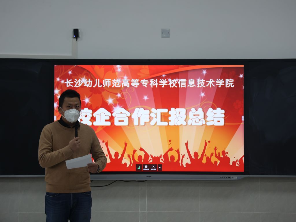 首先,信息技术学院院长吴佳蒂代表学院致欢迎辞,她总结了2022年学院取得的成果,向各位企业对学院专业建设做出的贡献表示感谢,接下来,厚溥科技、强智科技、辉弘教育、联想教育4家企业分别从合作的软件技术、数字媒体技术、云计算技术应用3个专业进行了校企合作总结汇报,各有特色,百花齐放,分别在人才培养方案修订、企业实际项目进课堂、教材开发、精品课程和资源库建设、实训室建设、现代学徒制专班培养、师资培养、师生技能竞赛、项目申报等方面进行了总结,反思了不足和待改进之处,对2023年如何进一步深入合作进行了规划。