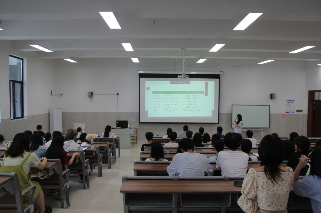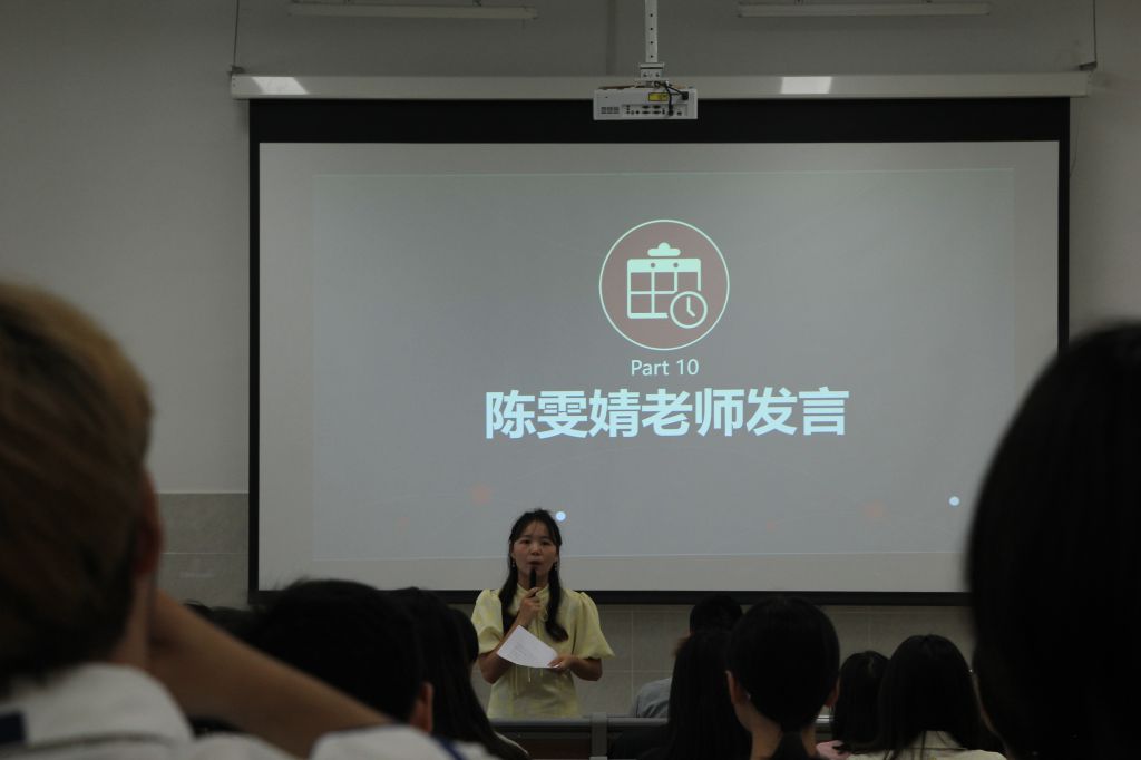 会议第三项,由学院陈雯婧老师对团学会学年工作进行总结,她表示对学生会成员的飞速成长感到欣慰与骄傲,也感谢大家长期以来的付出和努力,为学院各项工作的顺利开展保驾护航。同时她提到:海阔凭鱼跃,天高任鸟飞,希望团学会的每一位成员都不要浪费在团学会的每一天,要珍惜机会,珍惜平台,努力让自己的青春更加热烈、更有意义。陈老师号召同学们“不管努力被不被人看到,都不能懈怠自己的工作,只要你肯努力,终有一天会被人看见”。会议即将接近尾声之际,副院长王潇翔进行发言,充分肯定了我院学生会这学年取得的成绩,并向各学生会成员提出要求:学生会要明确学生干部的自身定位;要心怀感恩,珍惜机会;要扎扎实实做事;有规有矩,克服困难,做一名优秀的学生干部!