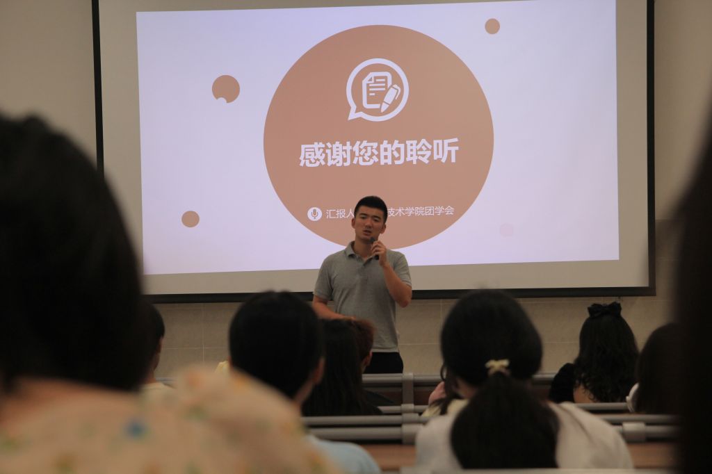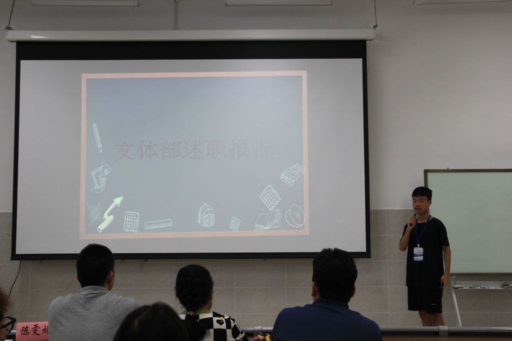 会议第一项,由主持人骆七上台宣布本次会议的流程,并对来到此次会议的领导老师们表示欢迎。随后,由各学生会部门代表依次上台进行部门述职报告演讲。