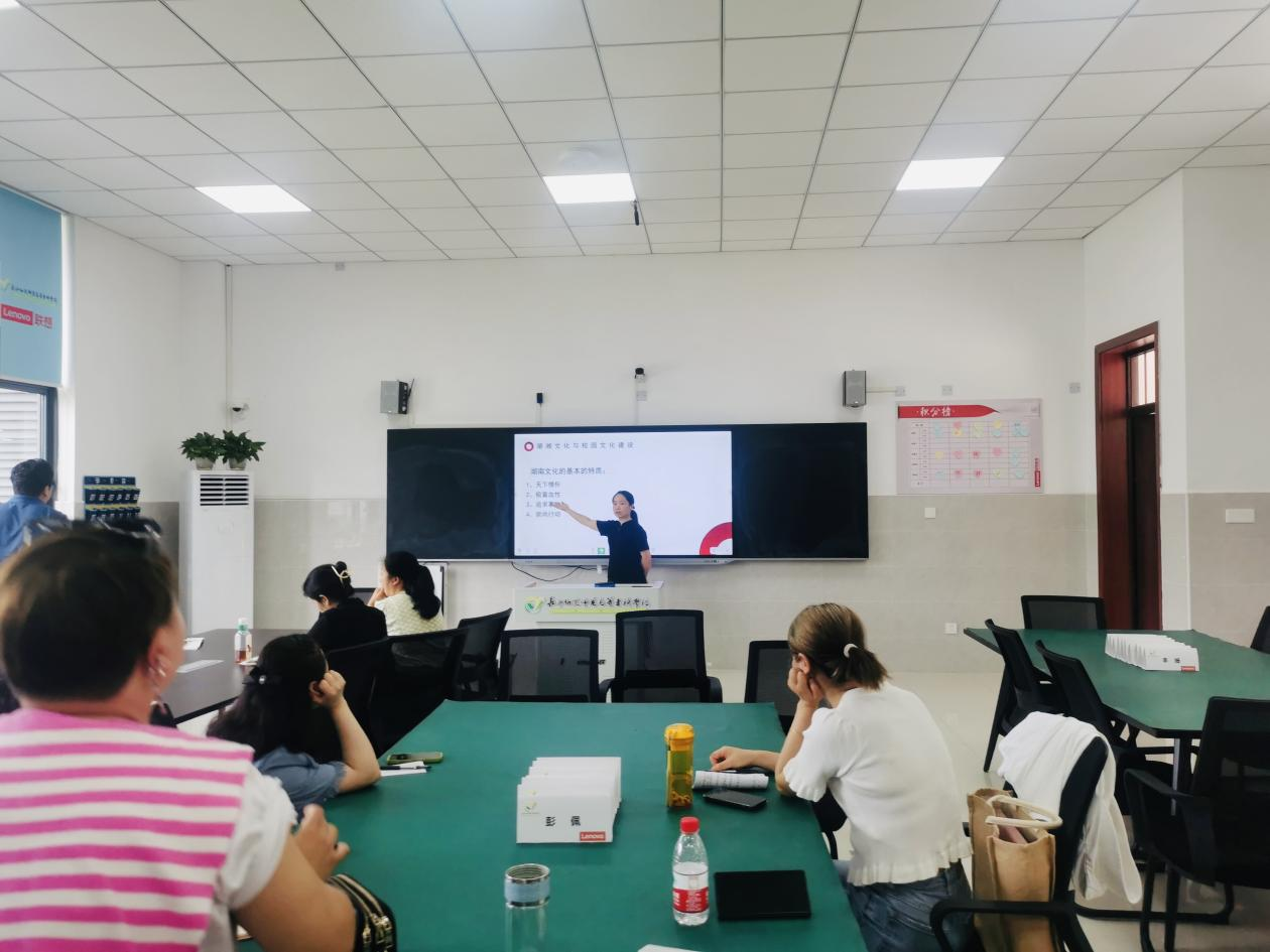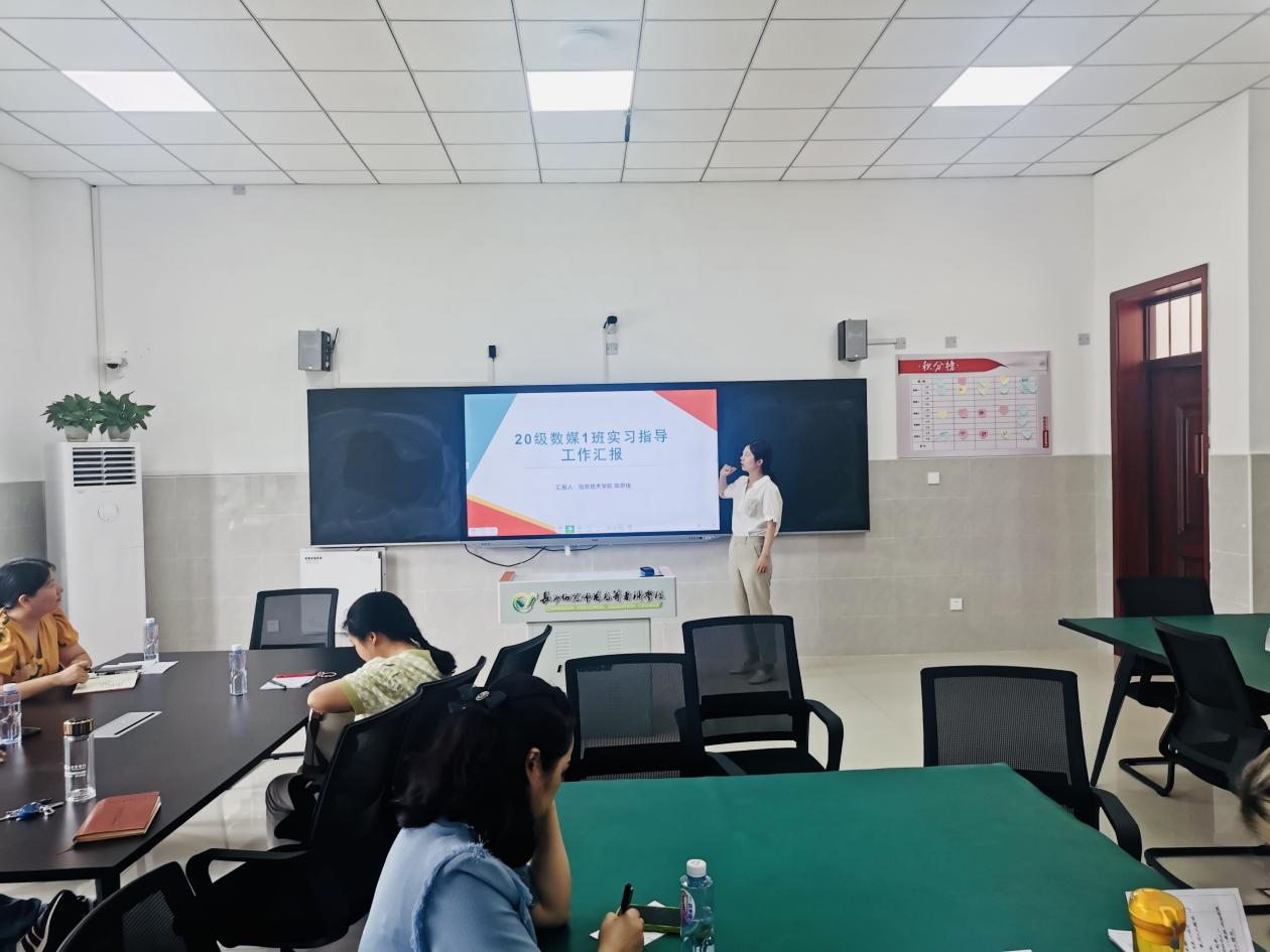 吴佳蒂院长就赴岳阳参加“双高”背景下高水平专业群建设高级研修班培训作分享,强调专业群建设的四大体系:人才培养体系、课程体系、实践教学体系、服务平台系统;同时,从思想、行动、资源、心态四个方面阐述外出学习取得的“收获”,不能做井底之蛙,应居安思危,提前做好职业规划,利用资源,搭建平台。