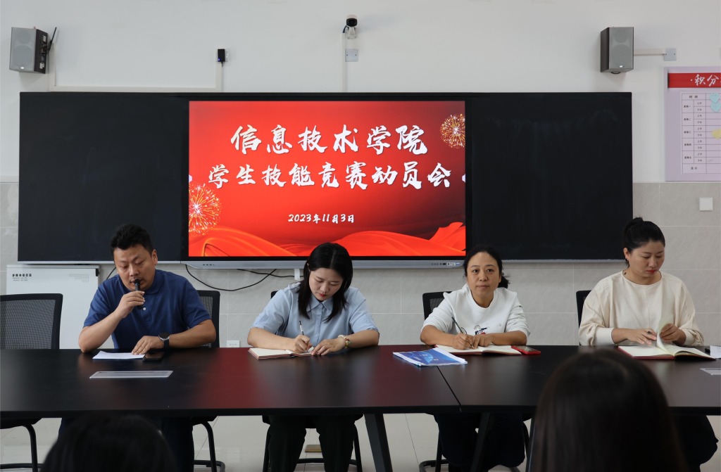 为了推动现代职业教育高质量发展,加强学生技能训练效率,11月3日上午,信息技术学院在技馨楼103教室举办了学生技能竞赛动员会。校教务处副处长田怡姿、院党总支书记李科、院长吴佳蒂、副院长彭勃、所有参赛队伍的指导老师和队员参加了动员会,会议由彭勃主持。