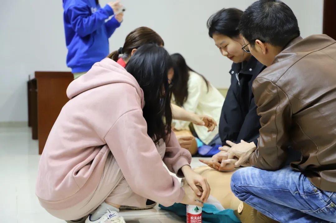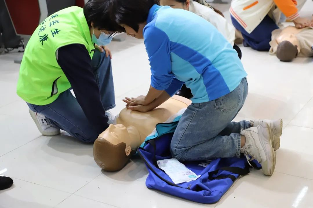 在活动现场,经验丰富的医生通过生动的实训操作,将急救知识转化为直观易懂的实战演练。首先,对心肺复苏这一核心急救技术进行了重点回顾,强调其操作步骤、力度控制及时间节奏等关键要素。接着,医生向在场学员演示了自动体外除颤器(AED)的正确使用方法,阐明了其在心脏骤停急救中的重要角色,以及如何与心肺复苏技巧无缝衔接。在互动环节中,同学们踊跃参与,亲身体验心肺复苏与AED的操作流程,现场学习氛围热烈且专注。