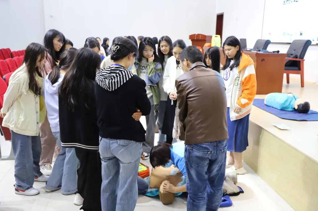2024年4月18日下午14:30至16:00,长沙市天心区城南路卫生服务中心携手信息技术学院22级五年制数媒班,在业馨楼108报告厅共同举办了一场主题为“急救知识与技能普及”的活动,旨在提升学生应急处理能力,传播生命守护的正能量。