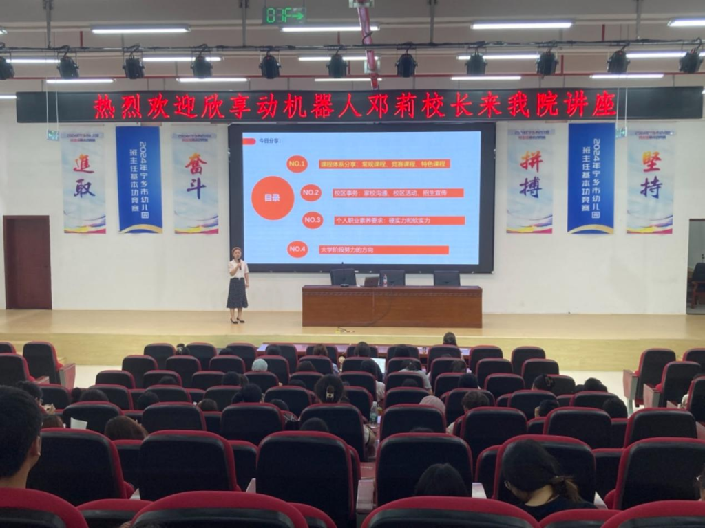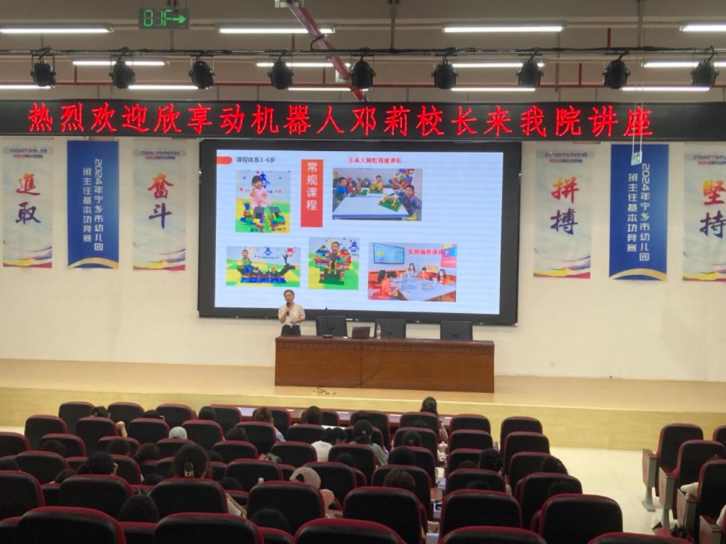 2024年6月19日下午,为了深化现代教育技术专业的发展,切实提高学生对于人工智能教师工作岗位的了解,并为学生提供更为丰富的实践机会和职业规划指导,信息技术学院现代教育技术专业邀请了湖南享动科教有限公司欣享动机器人邓莉校长开展了以《人工智能教师工作内容及职业素养要求》为主题的讲座与现场互动解答活动。活动在业馨楼报告厅举行,为22级、23级现代教育技术专业学生带来了一场精彩的经验交流。