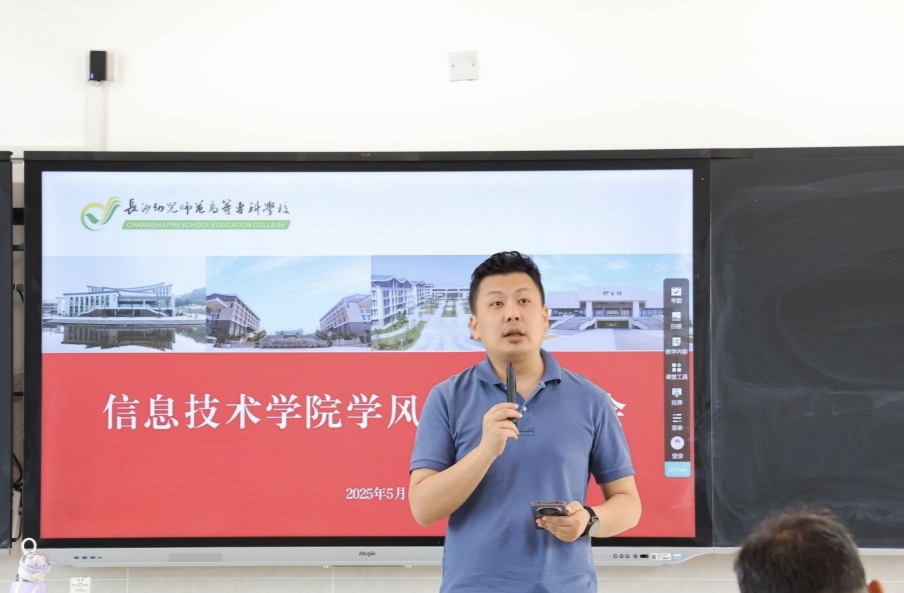 5月9日下午,信息技术学院在技馨楼503教室召开学风建设推进会,学院领导班子及全体教职工参加会议。会议积极响应学校“学风建设活动月”行动号召,就如何进一步强化学风建设,提升育人实效展开具体工作部署。