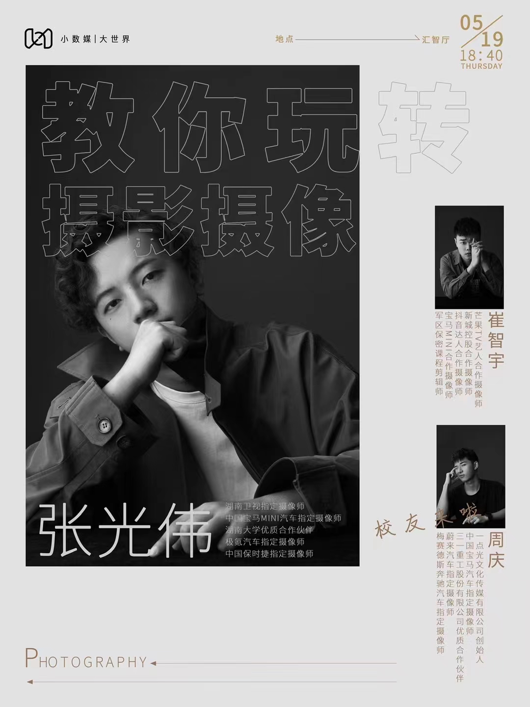 为进一步提升数字媒体技术专业人才培养水平,提升学生专业认知能力、增强专业认同感。5月19日晚,信息技术系特邀请湖南筑象文化传媒有限公司创始人张光伟先生、我校优秀毕业生代表——一点光文化传媒有限公司创始人周庆先生,开展“小数媒·大世界”系列讲座之教你玩转摄影摄像,面对面的带你感受行业发展、学习时下流行拍摄技巧,拉近与数媒行业的距离。信息技术系学生、专业教师近200人参加。