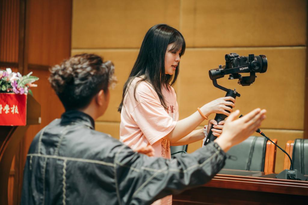 会上,校友周庆就行业发展现状、传媒公司、抖音公司摄影、摄像、后期制作等岗位所从事的具体工作及要求进行了介绍,同时希望大学生能够做到四个坚持:坚持社会实践,兼职做摄影助理、灯光助理、淘宝剪辑师、编剧;坚持并从剧情、观众视角、镜头语言设计、场景灯光布置调色等多角度看行业教程、优秀作品;坚持拍摄“想法”,坚定自己的努力方向;坚持随行随拍。张光伟对剧本创作、脚本书写、拍摄、剪辑、调色等工作流程进行了技巧分享,并在现场指导同学如何拍摄。最后,两位嘉宾还对同学的摄影作品进行了现场点评以及解答了同学们的摄影摄像困惑。