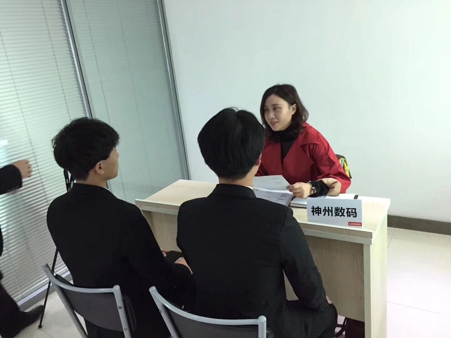 随后,各企业代表进行了宣讲,对学生进行面试,参加本次招聘会的企业有:联想阳光雨露信息技术服务(北京)有限公司、北京神州数码科捷技术服务有限公司、广州中铁信息工程有限公司湖南分公司、长沙宜泽信息技术有限责任公司。本次招聘会共有近90个岗位提供给联想专班42名同学,面试现场火爆,学生职业素养高、技能强,用人单位对我校学生赞不绝口。