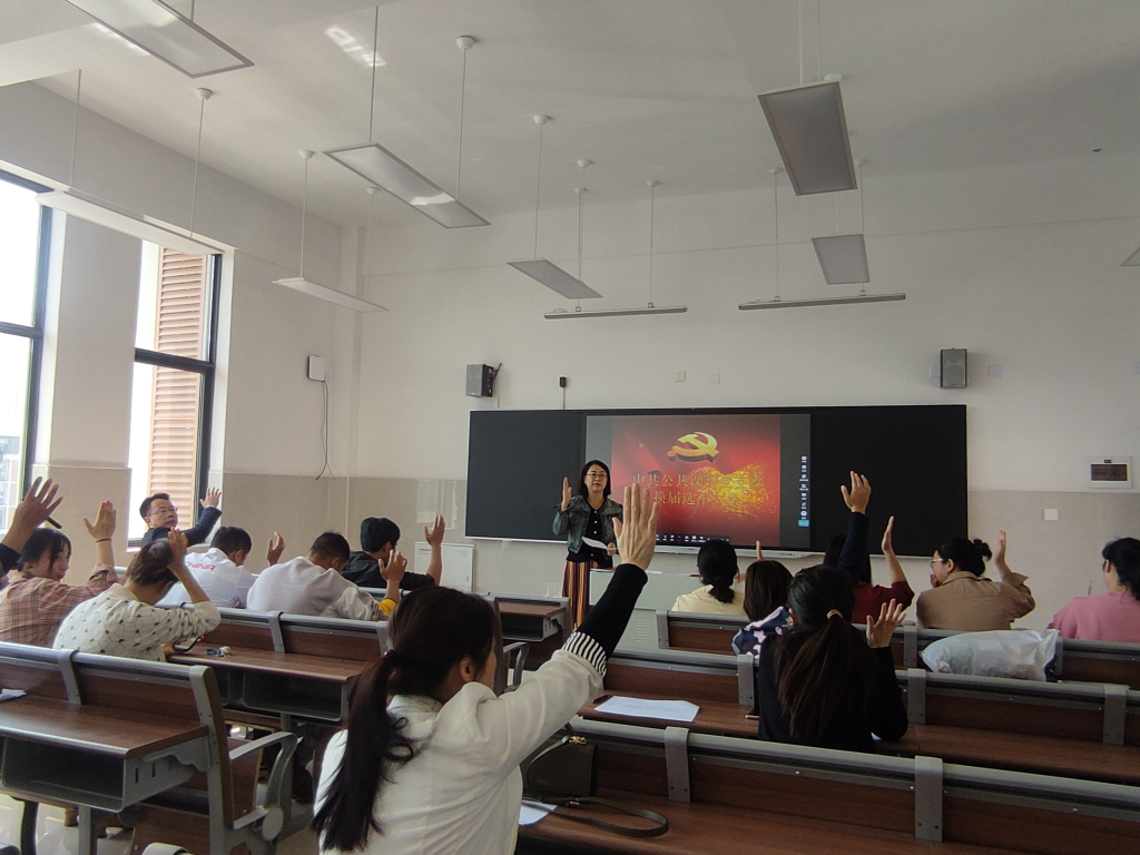 会议由朱轶老师主持,首先通过学校基层党组织换届选举办法,再由主持人向大会报告实到党员人数,公共课部党支部应到党员人数23人,实到正式党员21人,符合换届改选的有关规定。
