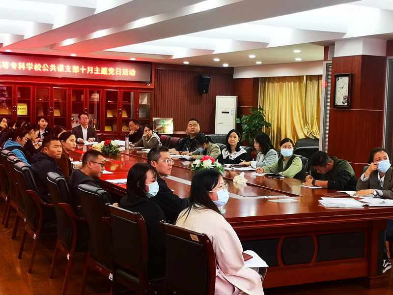 10月25日,公共课党支部全体党员在道馨楼广益厅参加十月主题党日活动。会议由支部书记张胜春同志主持。