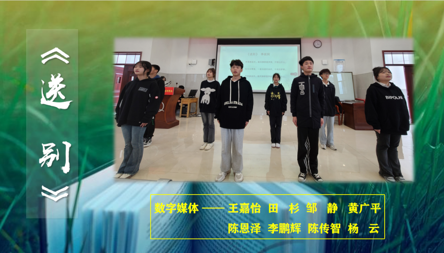 本次活动以语文课朗诵教学为指导,以课堂为载体,以学生自主实践为模式,以专业为特色。为了达到最大的参与度,活动以班级为单位,学生自己组织策划,自由组队、选材、排演,以小组为单位在课堂上进行朗诵表演。整个活动过程中,同学们的参与积极性高,参与度广,他们用饱满的情感,用抑扬美妙的语言在课堂上呈现了一首首经典作品:《木兰辞》展现了花木兰巾帼不让须眉,替父从军的英姿飒爽;《青春》让同学们领悟到青少年应以天下为己任,为祖国的前途、命运分愁担忧;《我的南方和北方》借以歌咏祖国山川的秀美,唤起大家对祖国山河的想象与热爱;《送别》用淡雅唯美的意境,唱出了朋友之间挥手相送的骊歌……