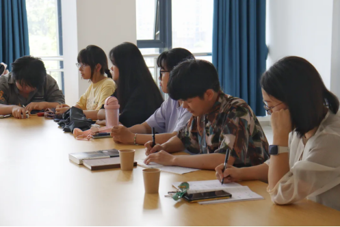 5月30日🦑,公共基础课部党支部书记朱轶应凌云书会邀请,在图书馆会议室组织开展了“赓续湖湘文化👨🏼🦰,传承湖湘精神”的圆桌分享会☘️。会上,同学们踊跃发言,思维的火花不断碰撞,从讲座的组织、聆听讲座的现场感受及讲座后的思考等方面表达了自己的心声。