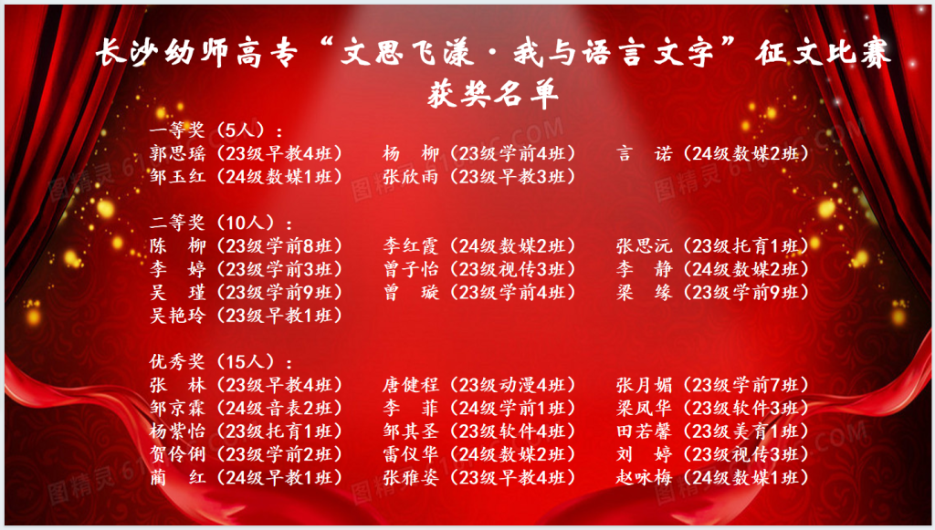 由学校教务处主办,公共基础课部承办的第27届全国推普周“文思飞漾·我与语言文字”主题征文活动已圆满结束。本次征文共收到征文100余篇,经组织评委进行盲审,共评选出30篇获奖文章,学校将会统一向征文获奖作者颁发获奖证书和奖品,祝贺获奖的小伙伴们!具体名单如下:
