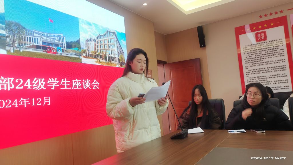 2024年12月17日下午,公共基础课部在德馨楼430会议室召开了24级学生教学座谈会,公共基础课部主任张胜春、教学干事龙娇颖、刘宏亮,24级各班学习委员参会。此次座谈会旨在深入了解不同专业学生对于公共课程的学习体验和需求,以便进一步优化教学内容,提升公共课教学质量。