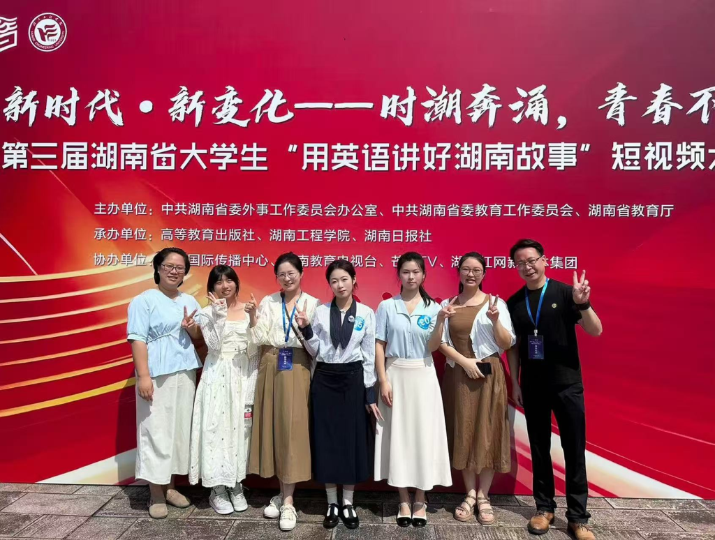 在2025“高教社”杯大学生“用外语讲好中国故事”优秀短视频作品现场交流活动中,我校学生与来自全国38支获省特等奖的高职高专院校队伍同台演讲,由周微、谭蓉老师指导的欧阳点晴、喻婧怡、许佳颖、文茜玲同学荣获全国一等奖第三名,特向获奖师生表示祝贺!