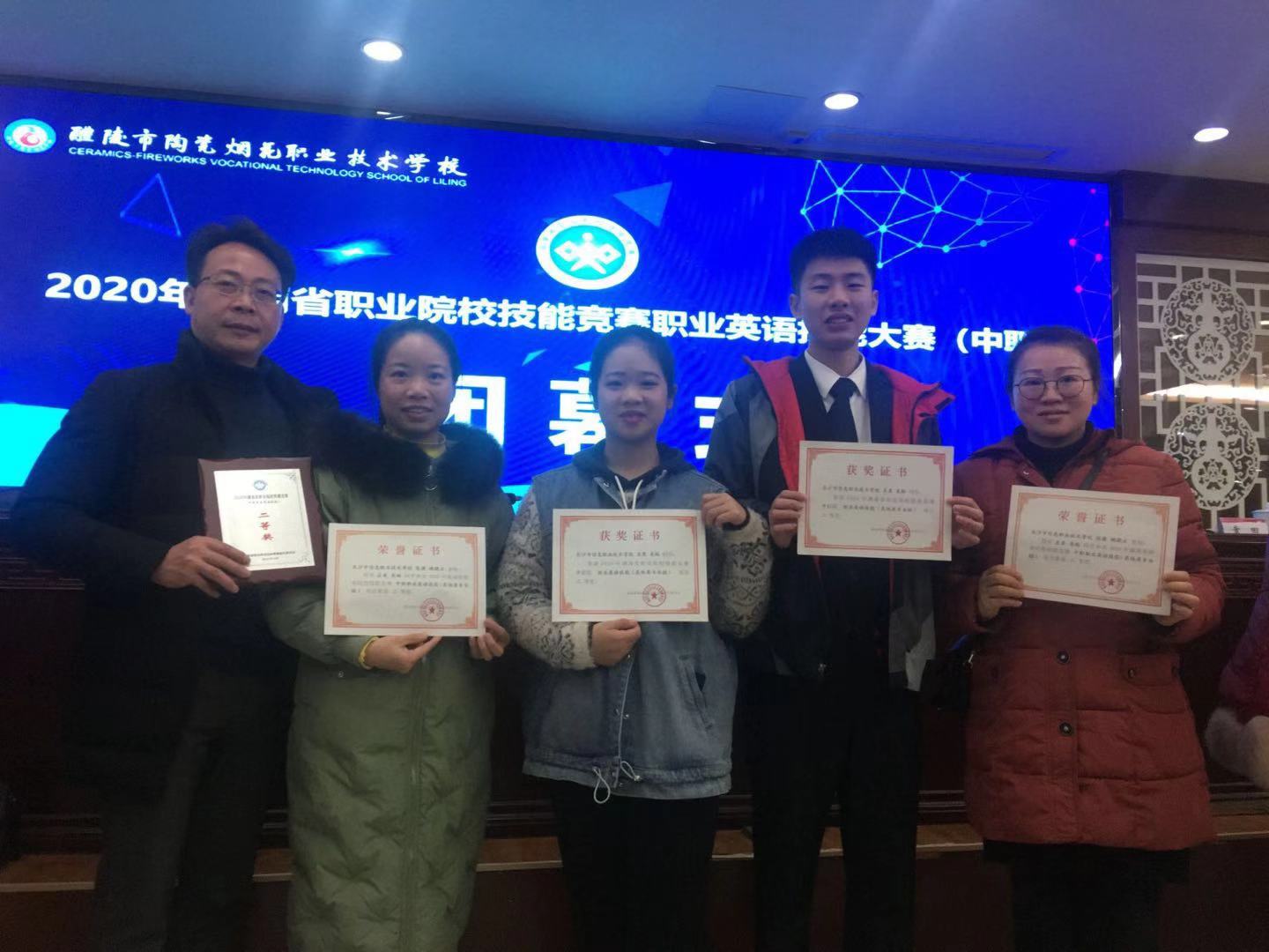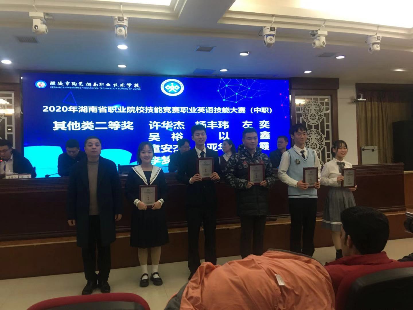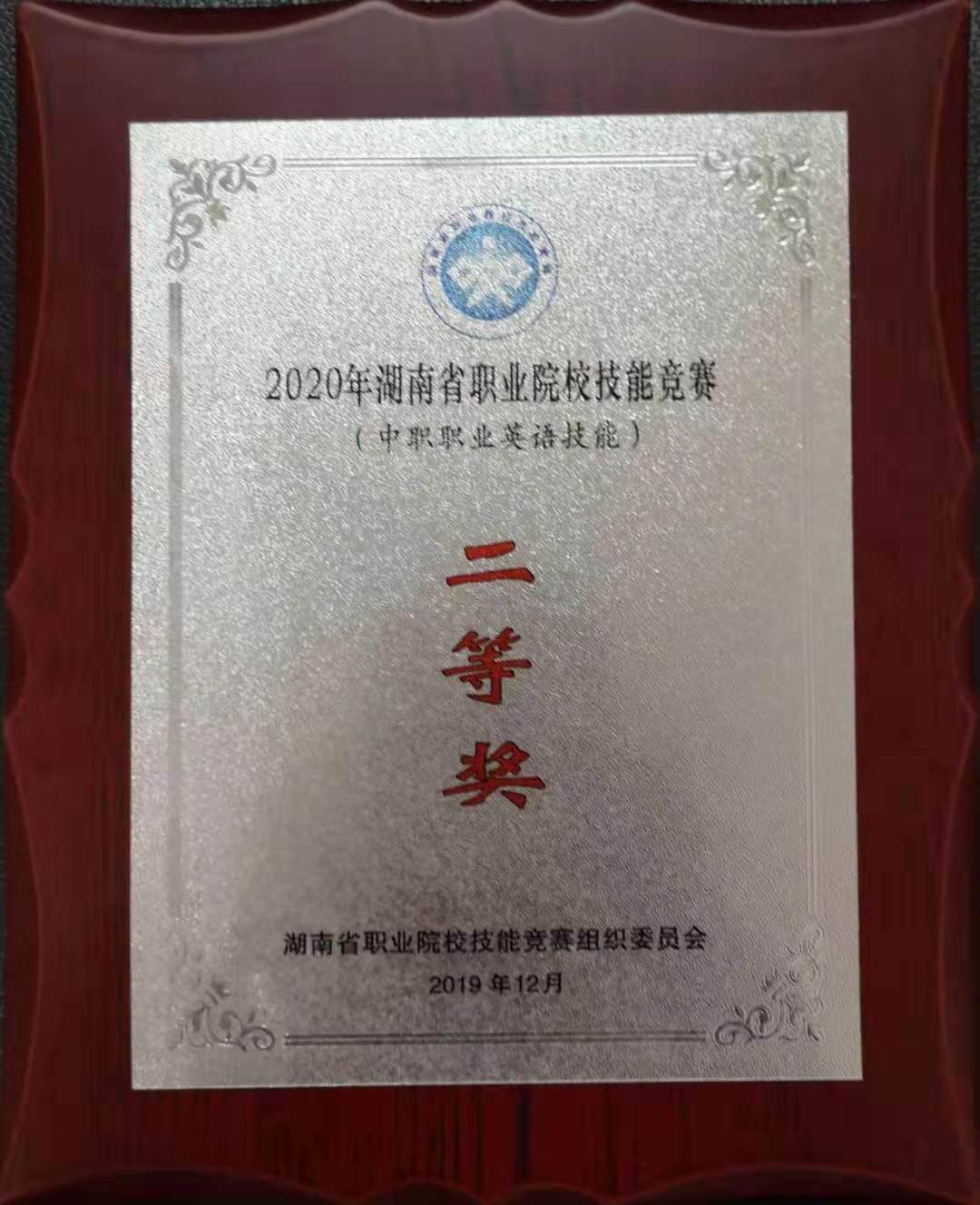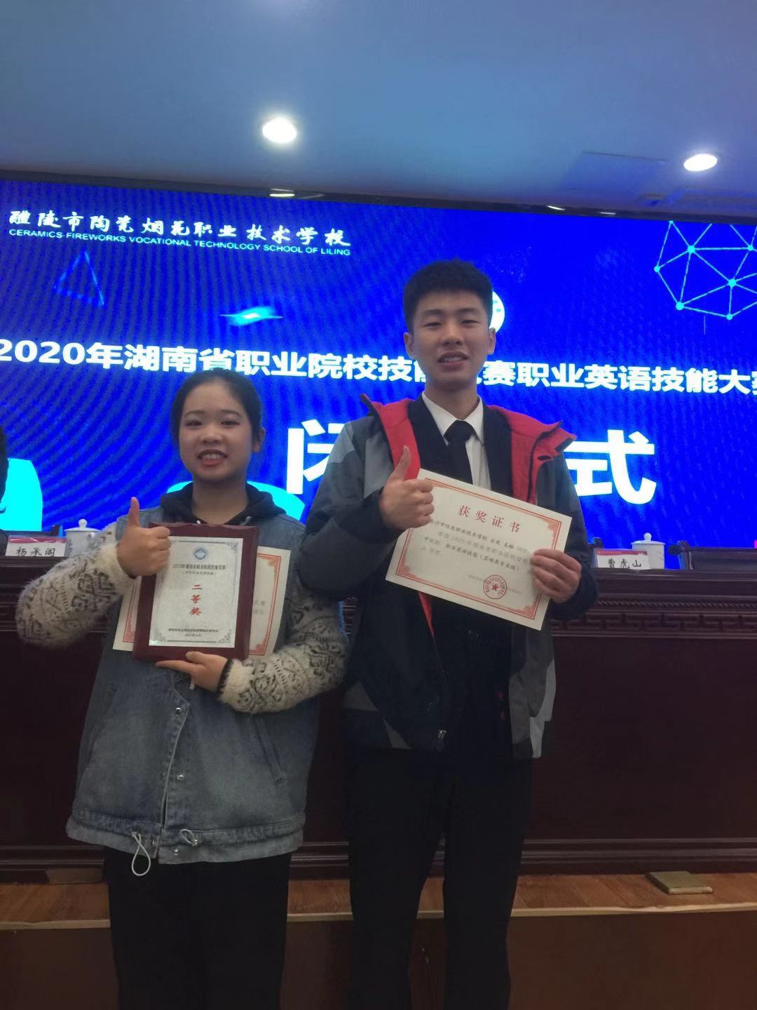 在刚结束的2020年湖南省职业院校技能竞赛(中职职业英语技能其他类专业组)中,我校英语教研室姚晓云和张捷指导的1813班左奕、1719班吴裕两位同学经过顽强拼搏,获得二等奖的好成绩,姚晓云和张捷分别获得优秀指导老师奖,特此向全校师生报喜。