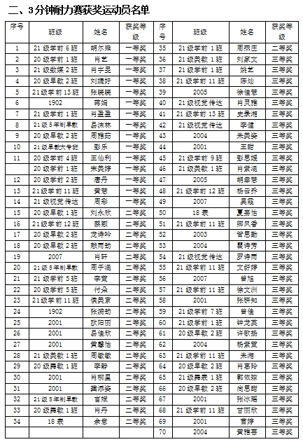 本次比赛采用线上参赛和线下复检的混合比赛模式,比赛分别设置1分钟速度赛和3分钟耐力赛,根据线上参赛的结果进行线下随机抽检,最后根据有效成绩获奖排名。比赛过程中,不但参赛运动员勤学苦练、精益求精,用热情与汗水为我们奉献了一场高质量的云端对决,还有一批默默奉献、不怕吃苦积极组织比赛的师生们值得我们点赞。大家的共同努力展现了特殊时期我校师生的良好风貌和强大的凝聚力。