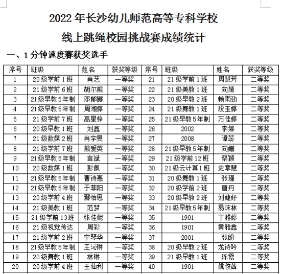 ----长幼高专2022年线上跳绳校园挑战赛顺利收官